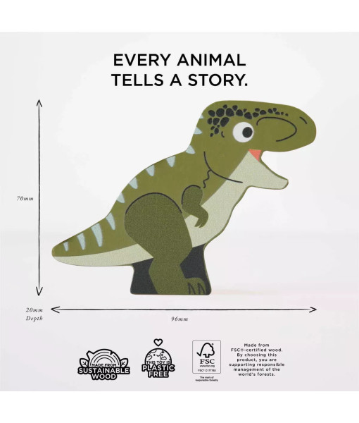 Βαμμένος με βάση το νερό, μη τοξικός, χωρίς βαφές, πλαστικό και κατασκευασμένος από πιστοποιημένο ξύλο FSC®, κάθε δεινόσαυρος είναι φιλικός προς το περιβάλλον . Παρακολουθήστε τη φαντασία να εκτοξεύεται στα ύψη και την περιέργεια να φουντώνει, καθώς τα μικρά παιδιά εξερευνούν τον προϊστορικό κόσμο των δεινοσαύρων μέσα από το παιχνίδι.