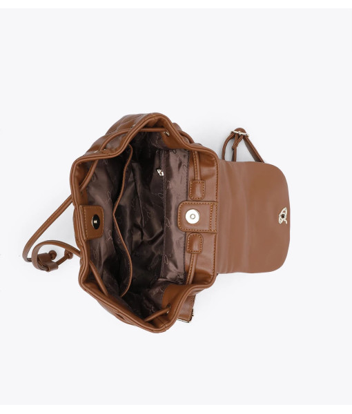 Γυναικείο σακίδιο πλάτης Sissel κατασκευασμένο από μαλακό τεχνόδερμα με σχέδιο από ραφές. Είναι επενδυμένο με φόδρα εσωτερικά και διαθέτει μία τσέπη με φερμουάρ και δύο ανοιχτές για οργάνωση μικρών αντικειμένων. Τα λουράκια πλάτης είναι φαρδιά για άνεση στη μεταφορά και μπορούν να ρυθμιστούν. Κλείνει με μαγνήτη, σχοινάκια και περιστρεφόμενο μεταλλικό κούμπωμα κάτι που του προσφέρει τεράστια ασφάλεια και το καθιστά ιδανικό για καθημερινές μετακινήσεις.