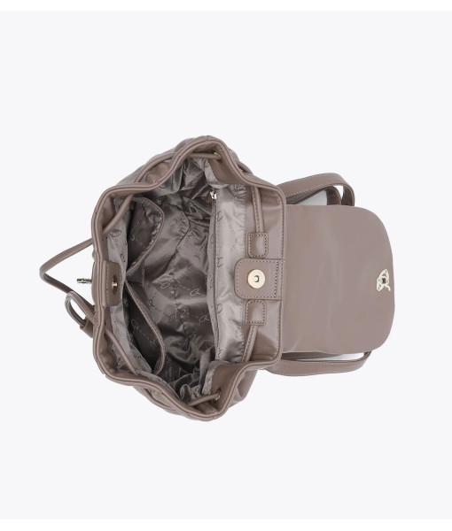 Γυναικείο σακίδιο πλάτης Sissel κατασκευασμένο από μαλακό τεχνόδερμα με σχέδιο από ραφές. Είναι επενδυμένο με φόδρα εσωτερικά και διαθέτει μία τσέπη με φερμουάρ και δύο ανοιχτές για οργάνωση μικρών αντικειμένων. Τα λουράκια πλάτης είναι φαρδιά για άνεση στη μεταφορά και μπορούν να ρυθμιστούν. Κλείνει με μαγνήτη, σχοινάκια και περιστρεφόμενο μεταλλικό κούμπωμα κάτι που του προσφέρει τεράστια ασφάλεια και το καθιστά ιδανικό για καθημερινές μετακινήσεις.