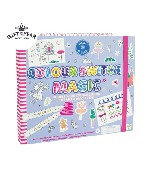 Το Colour Switch Magic είναι μοναδικό, καθώς όχι μόνο αποκτάτε τα σούπερ διασκεδαστικά στυλό που αλλάζουν χρώματα και το mega magic λευκό στυλό - αλλά αποκτάτε και ένα βιβλίο με δαχτυλίδι γεμάτο διασκέδαση! Χρησιμοποιήστε τις σελίδες με γραμμές για να γράψετε λέξεις και προτάσεις, στη συνέχεια χρησιμοποιήστε το μαγικό λευκό στυλό για να κάνετε τα γράμματα ριγέ ή πολύχρωμα, και στη συνέχεια αφήστε το στις σελίδες με τα σκίτσα και ανακαλύψτε ατελείωτες δημιουργικές δυνατότητες! Οι σελίδες με χρώμα είναι εξαιρετικές για συγκέντρωση, ενθαρρύνοντας την υπομονή και τη χαλάρωση. Μην ξεχάσετε τις σελίδες με αυτοκόλλητα! Διακοσμήστε τις δημιουργικές σας σελίδες με διασκεδαστικά αυτοκόλλητα στο θέμα του βιβλίου σας Colour Switch Magic. Το Colour Switch Magic είναι ιδανικό για πειραματισμό και ανάπτυξη δεξιοτήτων γραφής, σχεδίου και χρωματισμού.