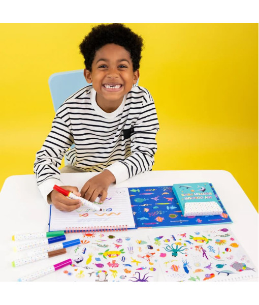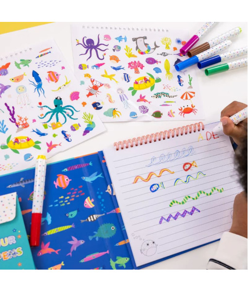 - Κάθε μπλοκάκι περιέχει 10 σελίδες με σκίτσα, 5 σελίδες με χρώματα, 5 σελίδες με γραμμές και 2 σελίδες με αυτοκόλλητα.