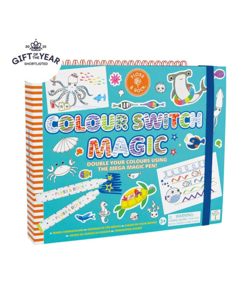 Το Colour Switch Magic είναι μοναδικό, καθώς όχι μόνο αποκτάτε τα σούπερ διασκεδαστικά στυλό που αλλάζουν χρώματα και το mega magic λευκό στυλό - αλλά αποκτάτε και ένα βιβλίο με δαχτυλίδι γεμάτο διασκέδαση! Χρησιμοποιήστε τις σελίδες με γραμμές για να γράψετε λέξεις και προτάσεις, στη συνέχεια χρησιμοποιήστε το μαγικό λευκό στυλό για να κάνετε τα γράμματα ριγέ ή πολύχρωμα, και στη συνέχεια αφήστε το στις σελίδες με τα σκίτσα και ανακαλύψτε ατελείωτες δημιουργικές δυνατότητες! Οι σελίδες με χρώμα είναι εξαιρετικές για συγκέντρωση, ενθαρρύνοντας την υπομονή και τη χαλάρωση. Μην ξεχάσετε τις σελίδες με αυτοκόλλητα! Διακοσμήστε τις δημιουργικές σας σελίδες με διασκεδαστικά αυτοκόλλητα στο θέμα του βιβλίου σας Colour Switch Magic. Το Colour Switch Magic είναι ιδανικό για πειραματισμό και ανάπτυξη δεξιοτήτων γραφής, σχεδίου και χρωματισμού.