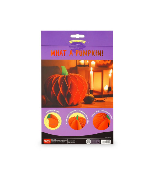 Το σκάλισμα μιας βαριάς κολοκύθας είναι δύσκολη δουλειά, αλλά η ελαφριά πτυσσόμενη χάρτινη κολοκύθα για το Halloween - What a Pumpkin! από τη Legami είναι εύκολη, διασκεδαστική και εξίσου εντυπωσιακή! Ανοίγει ως δια μαγείας και κλείνει ξανά μόλις τελειώσει το πάρτι, έτοιμη για άλλη μια έκπληξη του χρόνου.