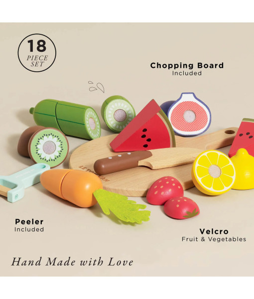 Ψιλοκόψτε, ψιλοκόψτε! Οι επίδοξοι σεφ θα λατρέψουν να ετοιμάζουν νόστιμα γεύματα με αυτό το υπέροχο σετ σανίδων κοπής 18 τεμαχίων. Αυτό το ευφάνταστο παιχνίδι είναι κατασκευασμένο με βιώσιμο τρόπο από ξύλο πιστοποιημένο από FSC ® και αποτελεί μια υπέροχη προσθήκη σε σενάρια ρόλων. Αποτελείται από μια φυσική ξύλινη σανίδα κοπής, έναν αποφλοιωτή, ένα μαχαίρι και μια επιλογή από νόστιμα φρούτα και λαχανικά που μπορούν να «ψιλοκοπούν» χρησιμοποιώντας την έξυπνη λεπτομέρεια Velcro. Ένα εξαιρετικό δώρο για την ενθάρρυνση των κοινωνικών δεξιοτήτων, τη βελτίωση της επιδεξιότητας και την ενίσχυση των λεπτών κινητικών δεξιοτήτων.