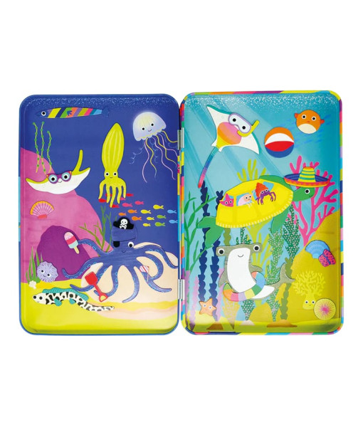 Διασκεδαστικό παιχνίδι σε ένα πρακτικό μαγνητικό κουτί! Περιέχει 3 φύλλα με μαγνήτες που αποσπώνται, ώστε να διασκεδάσετε κολλώντας πάνω από 50 φωτεινά, χαρούμενα μαγνητικά κομμάτια στις 2 διασκεδαστικές σκηνές στο εσωτερικό του κουτιού και να αφήσετε τη φαντασία σας ελεύθερη, δημιουργώντας υπέροχες εικόνες με γοργόνες, μονόκερους, φιλικά ψάρια και πολλά ακόμη. Ένα ιδανικό μικρό δώρο, τυπωμένο με μελάνια σόγιας και κατασκευασμένο από ανακυκλωμένα υλικά. Όταν τελειώσετε το παιχνίδι, το μαγνητικό κουτί αποθηκεύει με ασφάλεια όλα τα κομμάτια, έτοιμα για την επόμενη φορά.